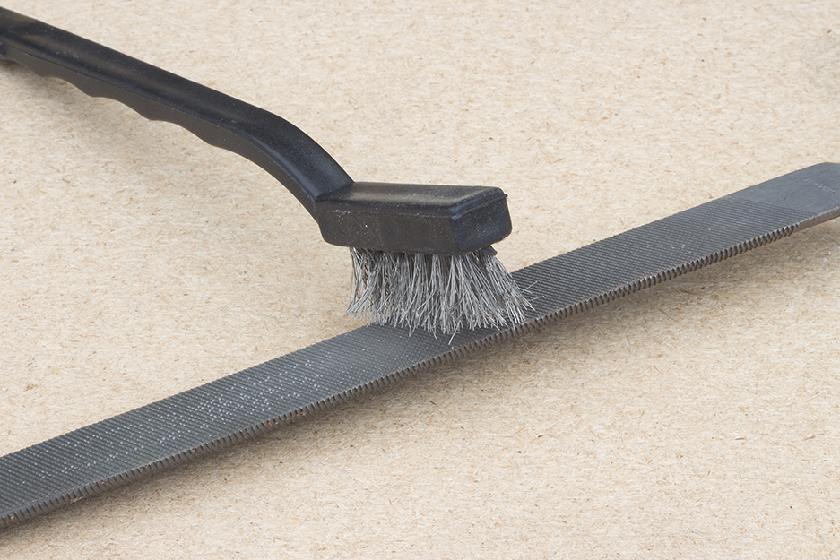 • Limpeza com escova de aço: essa escova é muito eficiente na remoção de cavacos e resíduos dos dentes da lima e grosa.